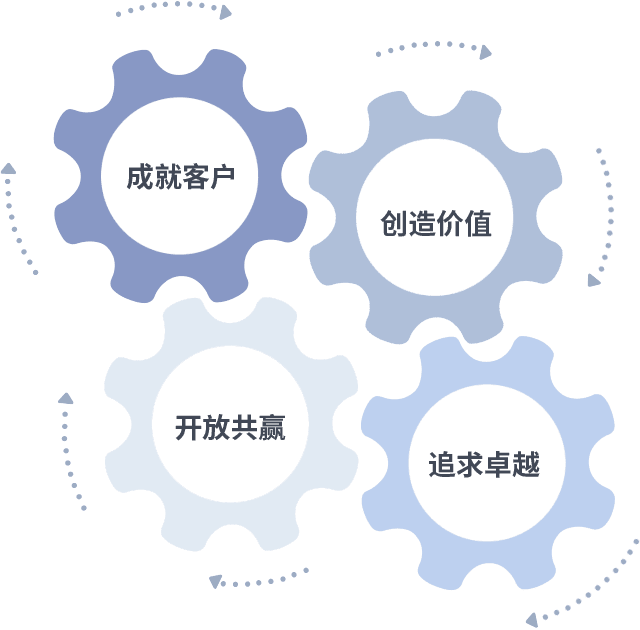 成就客户是一切决策的出发点,,,,创造价值是衡量所有工作的标准,,,追求卓越是Stake做事做人的态度,,,,开放共赢是Stake的格局也是最终的结果。。。。价值观的齿轮环环相扣,,推动着组织里的每个人不断向前。。